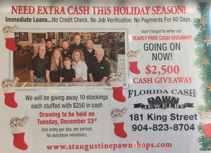 Florida Cash Inc. has been helping St. Augustine, FL, residents buy, sell, and pawn their items since 1992.